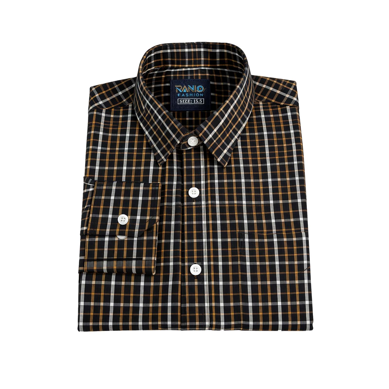 Men’s Black & Brown Checkered Casual Shirt – Premium Cotton Slim Fit