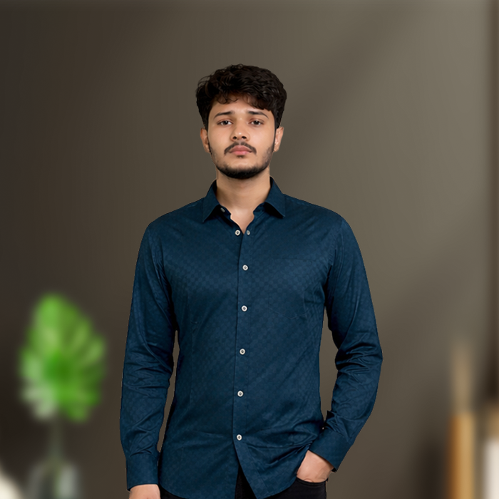 Premium Jacquard Textured Navy Blue Shirt for Men